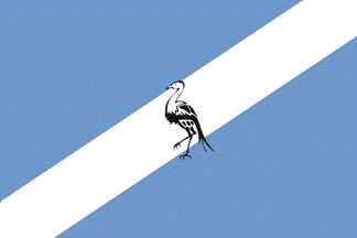 The flag of the Ciskei shall be blue with a bend sinister of white, over all a Blue Crane proper edged white (sic). The width of the flag shall be equal to two-thirds of its length. The width of the bend sinister shall be one-sixth of the length of the flag. The height of the Blue Crane shall be one-third of the width of the flag.